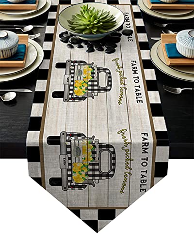 🔥 Cashback up to 70% Meet 1998 Cotton Linen Table Runners Truck Lemon Farm Tablecovers for Kitchen Garden Black Check Wedding Parties Dinner Indoor Outdoors Home Decorations 13x70 inches